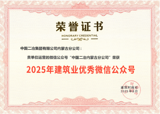 近日,建筑时报社2025年建筑业优秀微信公众号评选结果正式揭晓,中国二冶集团内蒙古分公司运营的官方微信公众号成功入选,凭借鲜明的内容特色与显著的传播成效斩获此项行业荣誉。?